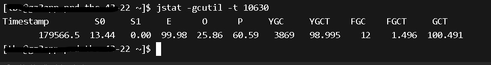 jstat -gcutil查看gc的情况,可以看到gc并不算特别频繁,应该不是gc导致的性能问题