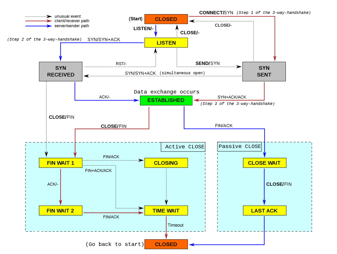 掌握TCP就必须了解每个TCP连接的状态迁移: