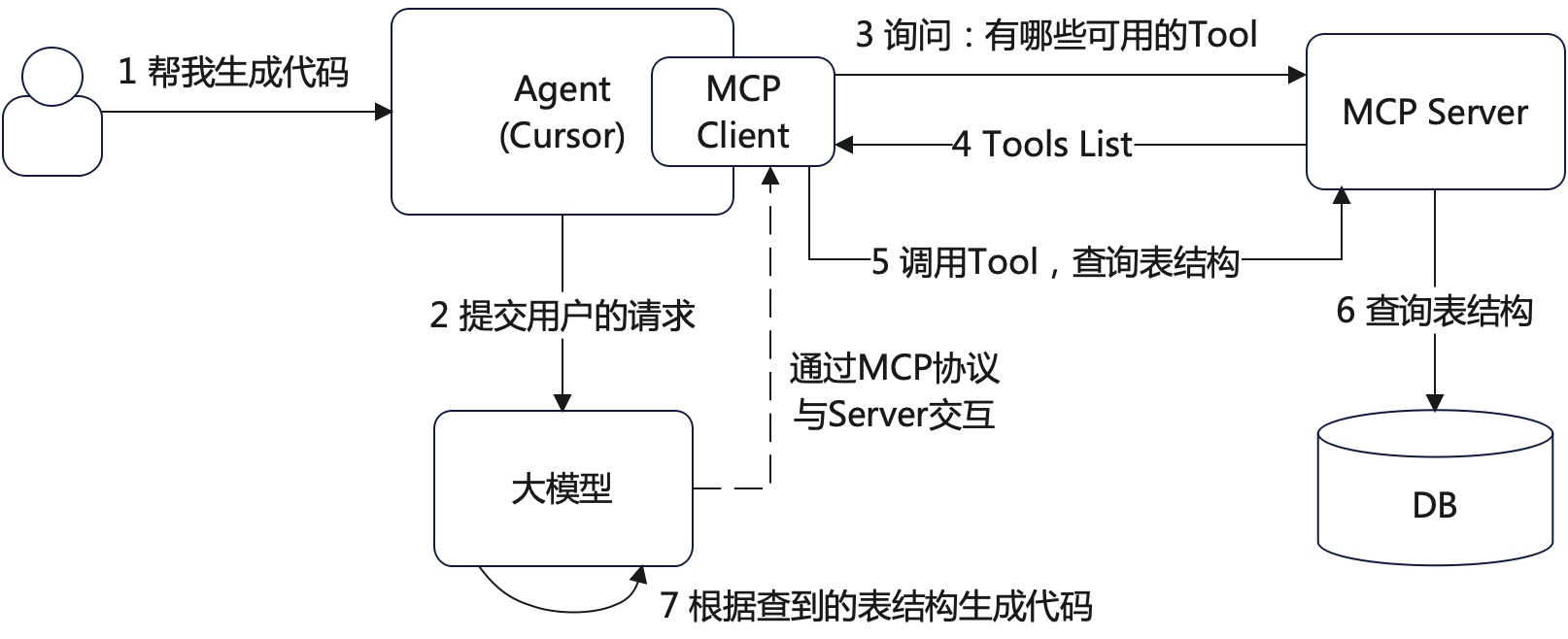 关于什么是MCP,我就不再赘述了,网上到处都是资料。在这个示例中,因为Agent(Cursor)已经集成了MCP Client,因此我不需要再开发Client,只需提供MCP Server即可。