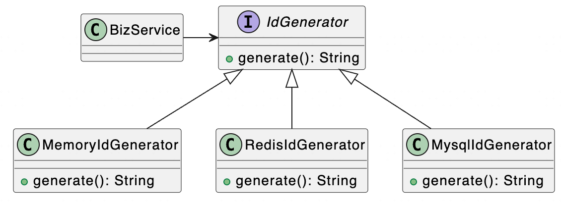 这时我们就可以实现多个不同的生成器,可以根据不同的业务场景采用不同的实现。但是在调用方无需感知多种不同实现的差异性。