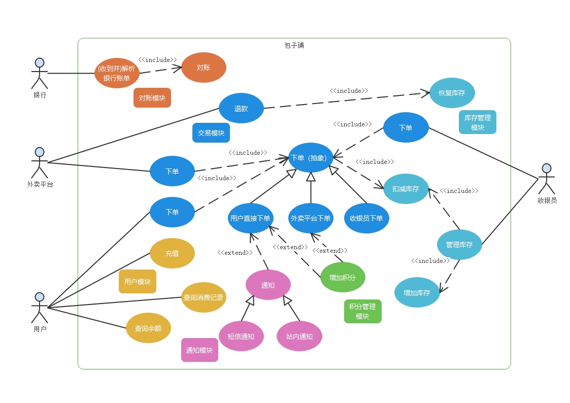 还是以上次说的用户买包子的例子说明,我把系统用例稍微再完善一下: