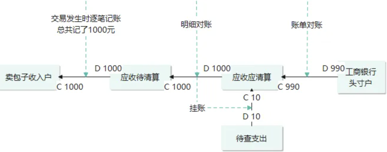 为了避免MT把账算错,我们自己也需要保存交易明细,T+1清算时拿MT的账(清算文件)和我们的交易明细进行比对,不论多了、少了、重复了、金额记错了都可以发现,这一层叫明细对账