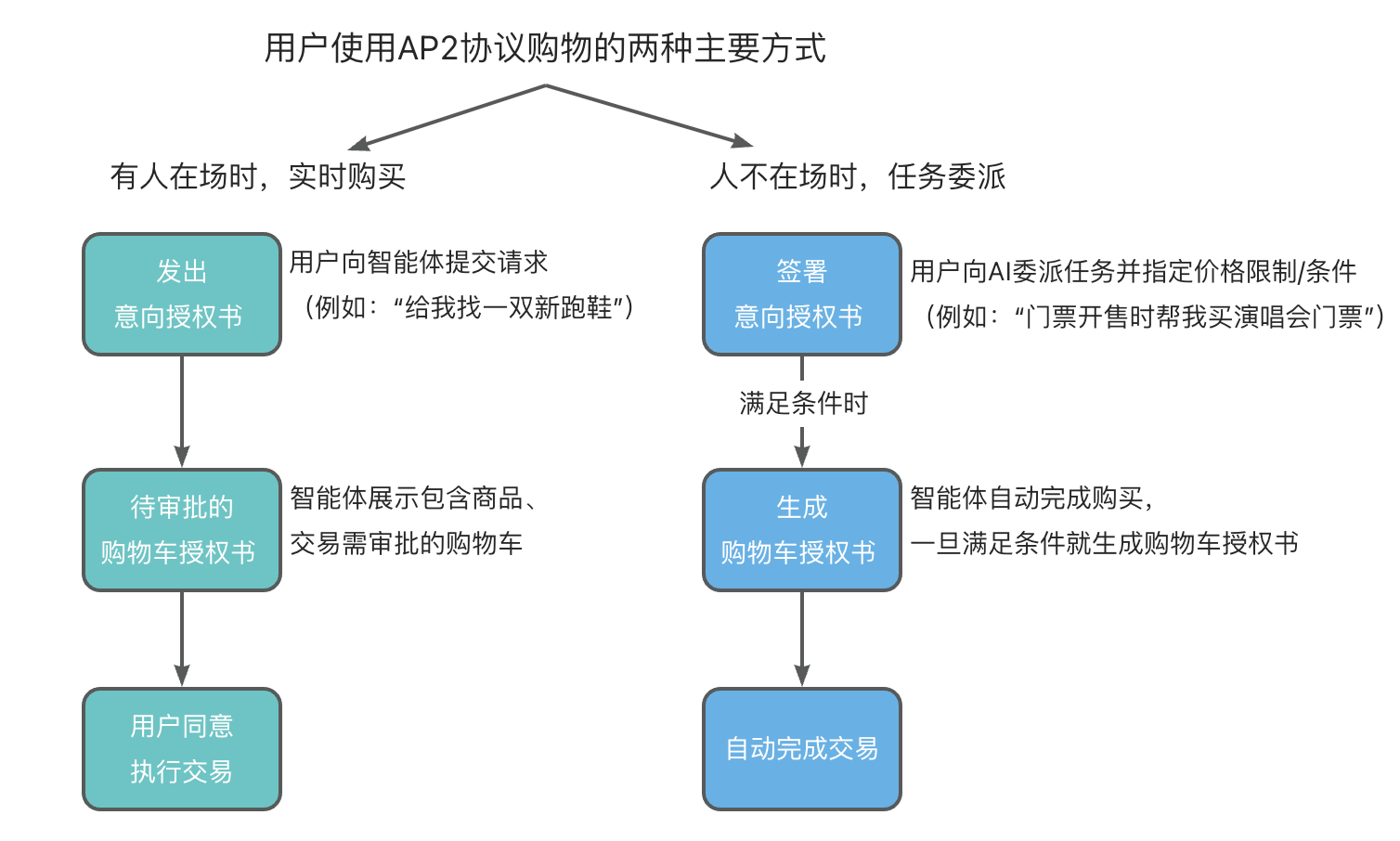 为此,谷歌引入了新的“授权书 Mandate”系统——这是一种作为用户指令证明的数字合同,并提供可供用户、支付提供商和商户验证交易的书面审计追踪。当用户向智能体发出请求时(例如“买双新跑鞋”),这就构成了“意向授权书”;而当要求得到满足、交易准备批准或自动执行时(取决于用户的指令),便会生成“购物车授权书”。