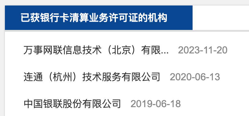 很多支付机构根本没来得及接触清算业务,就被银联、网联取代了清算职责。央行《银行卡清算机构管理办法》、《非银行支付机构网络支付业务管理办法》规定清算业务必须要有清算牌照,目前持有清算牌照的只有3家公司: